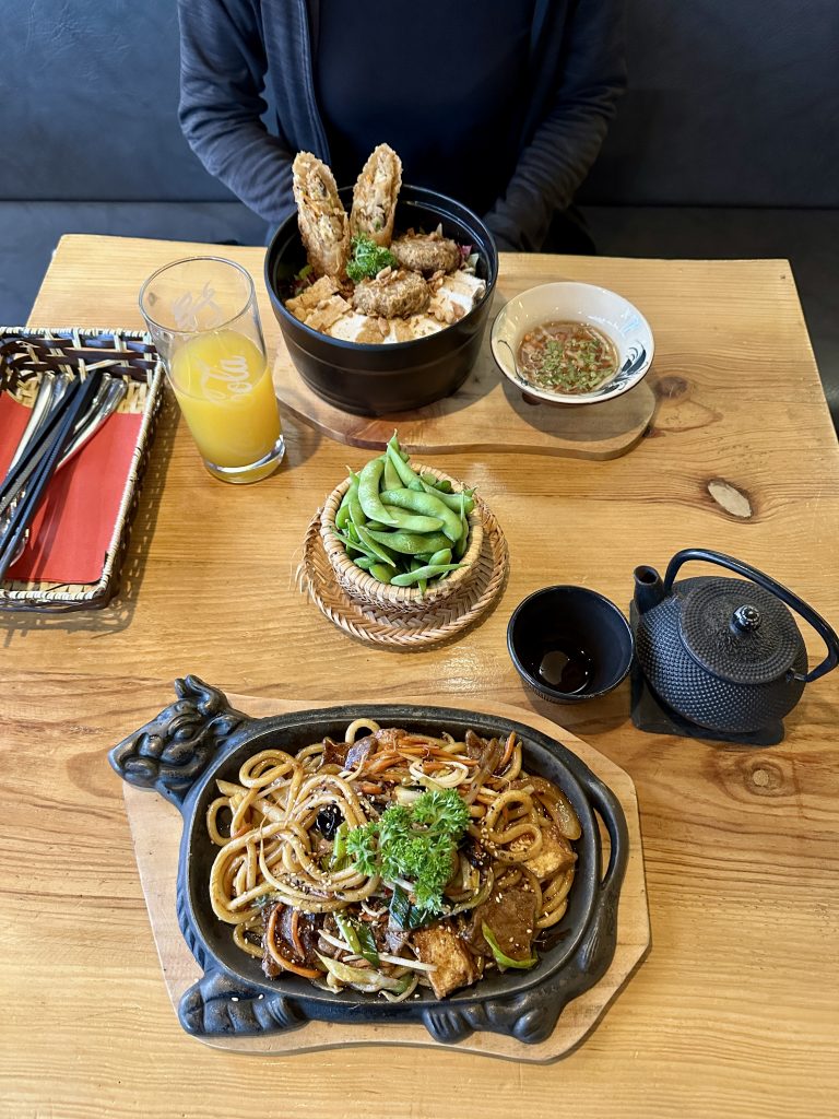 Mittagspause beim Lucky Cat Vegan Restaurant mit Sockenwechsel, einem Heißgetränk und kurz trocknen. Danach fühlte sich alles wieder ein wenig leichter an.